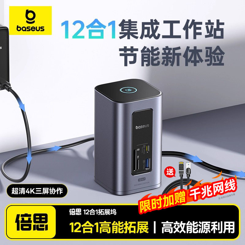 倍思拓展坞typec扩展hdmi投屏转换usb分线器hub集线网线多接口转接头适用华为苹果雷电4笔记本电脑手机平板