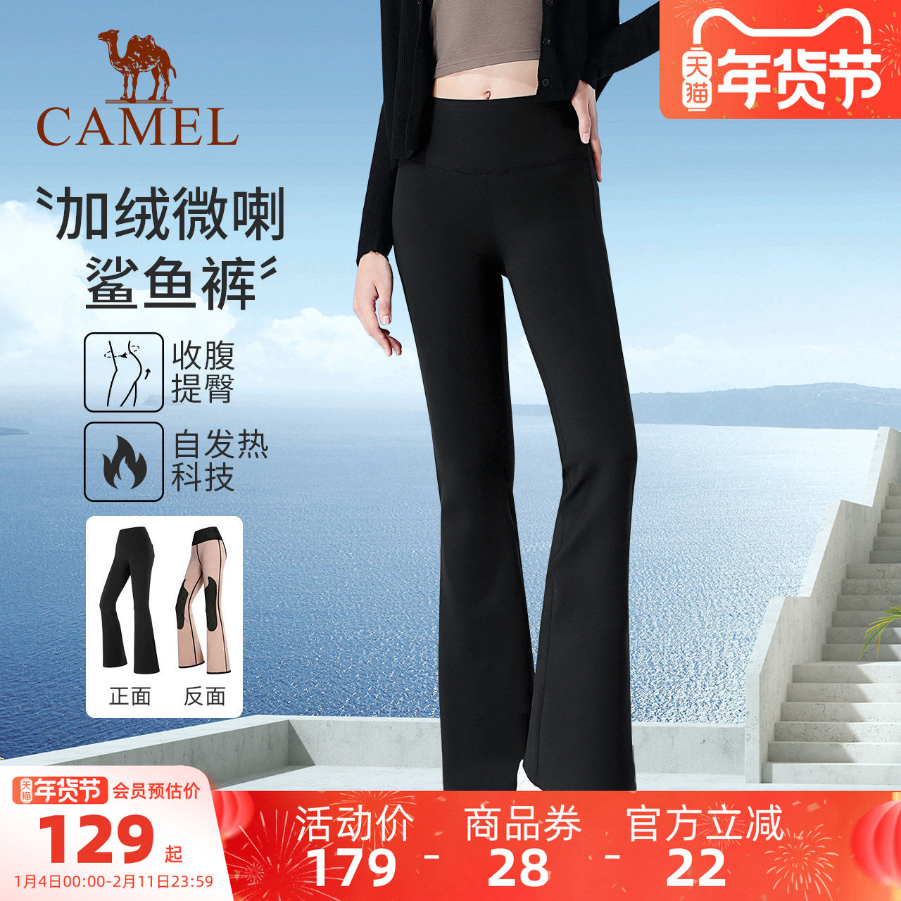 骆驼微喇叭鲨鱼裤女秋冬季时尚加绒保暖针织长裤子休闲外穿阔腿裤