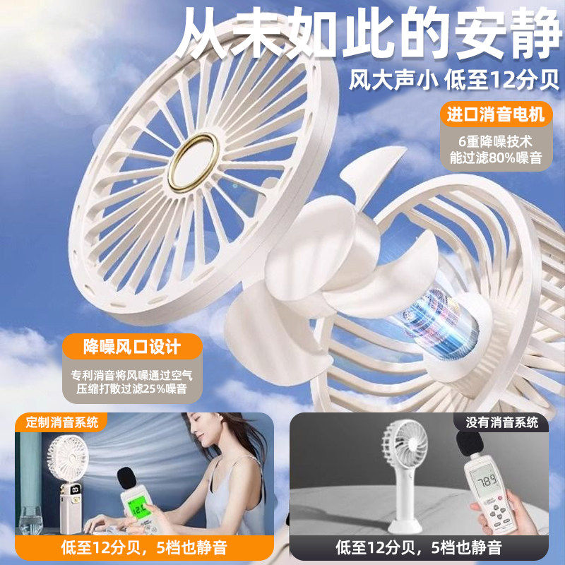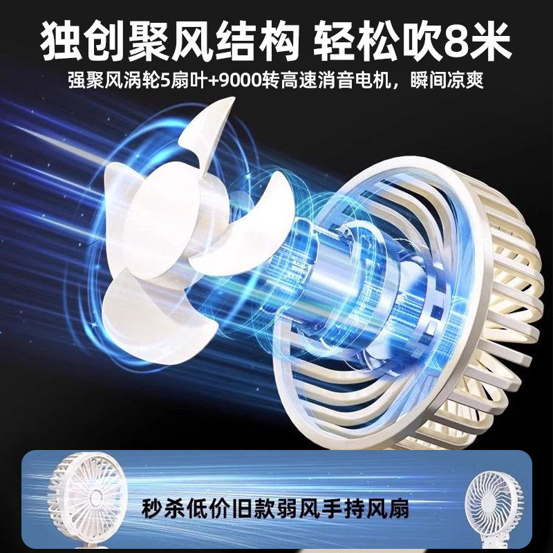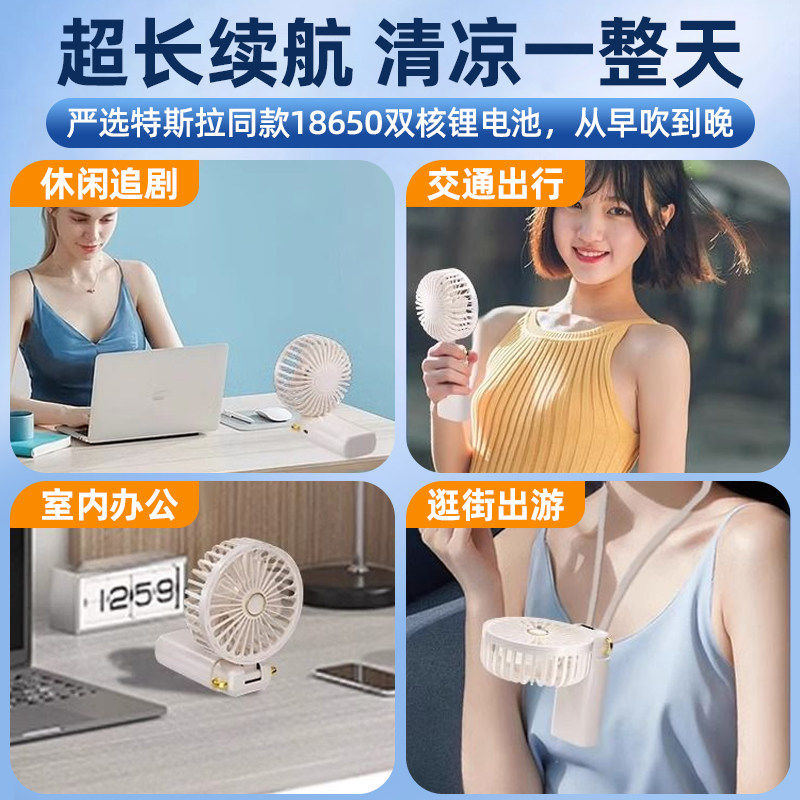 手持小风扇usb可充电超长续航大风力静音随身携带出行两用可折叠