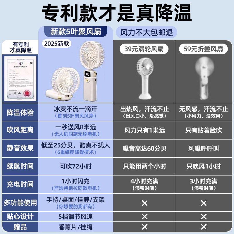 2026新款手持小风扇可爱便携式随身小型静音迷你学生usb可充电超长续航大风力宿舍办公室桌面儿童制冷电风扇