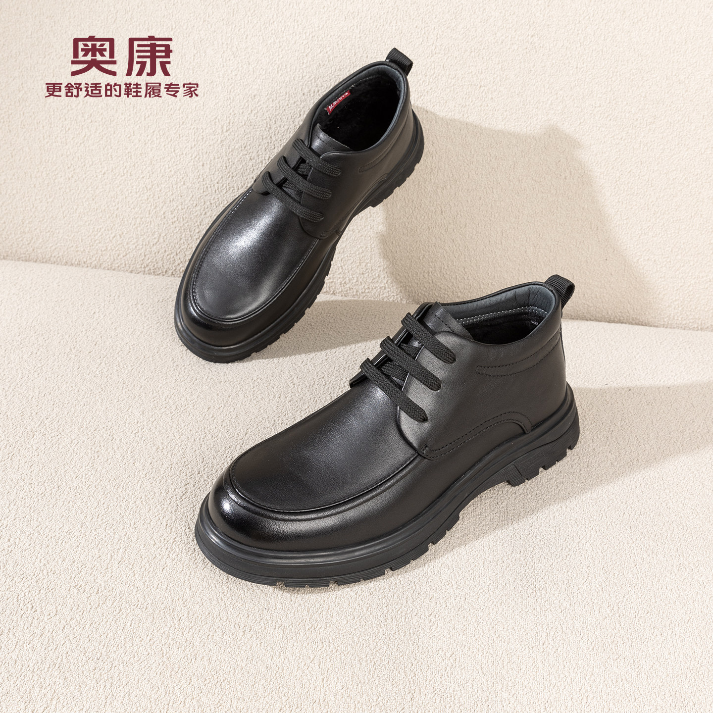 奥康 男鞋2025冬季新款正装皮鞋工作职场加绒保暖中帮棉鞋时装靴