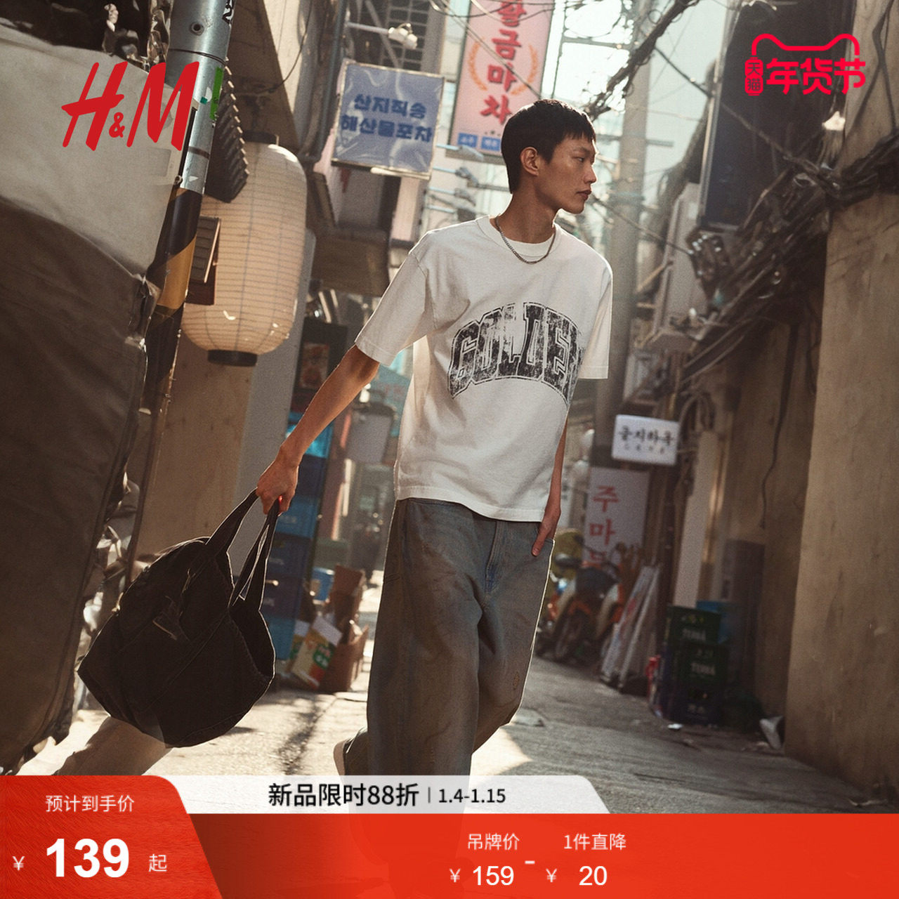 HM男装女装T恤春季新款打底衫重磅潮流宽松情侣装印花短袖1262292