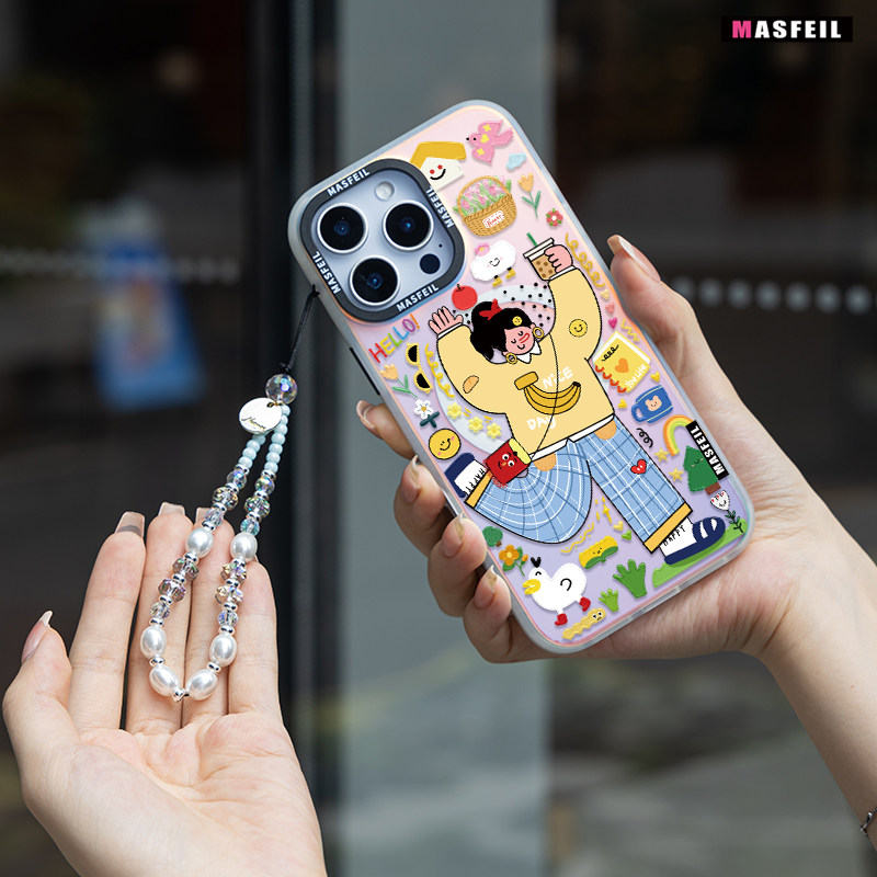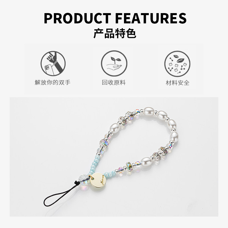 MASFEIL × 珍珠水晶手机挂链挂绳短款挂链绳子适用苹果16手机壳配件包包高级炫彩挂件挂饰超火防丢绳网红女