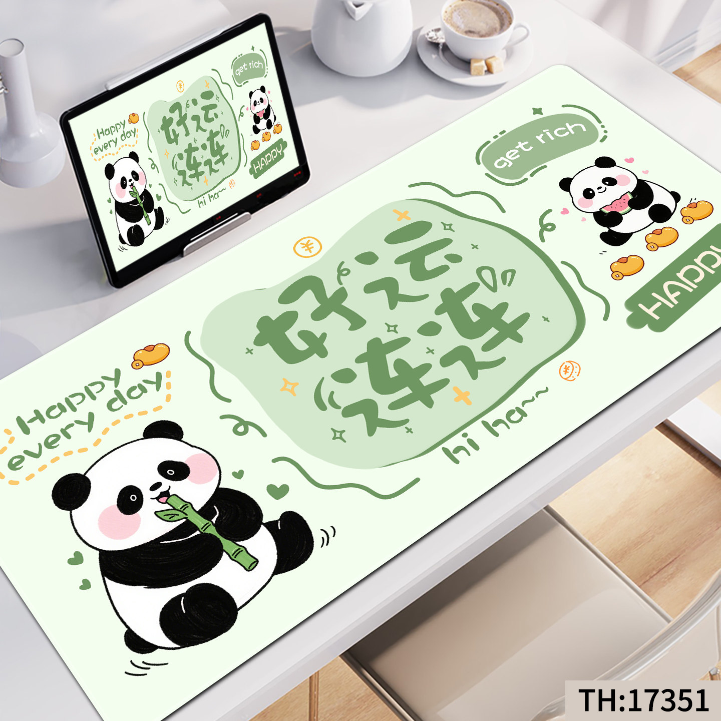 鼠标垫子女生高颜值超大发财暴富文字办公桌垫电脑桌面键盘垫护腕