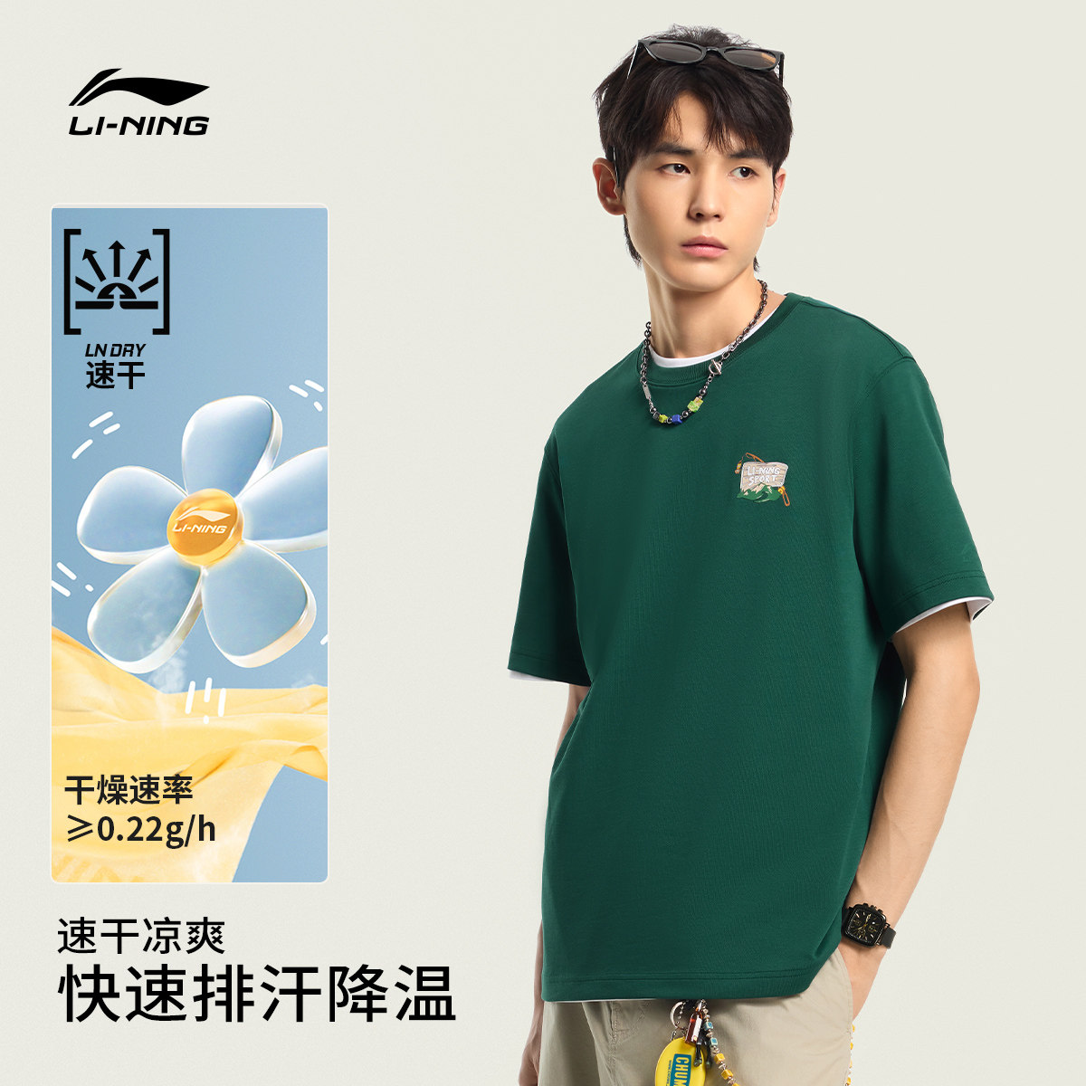 李宁户外短袖男春夏2026新款情侣圆领速干上衣半袖针织运动T恤女