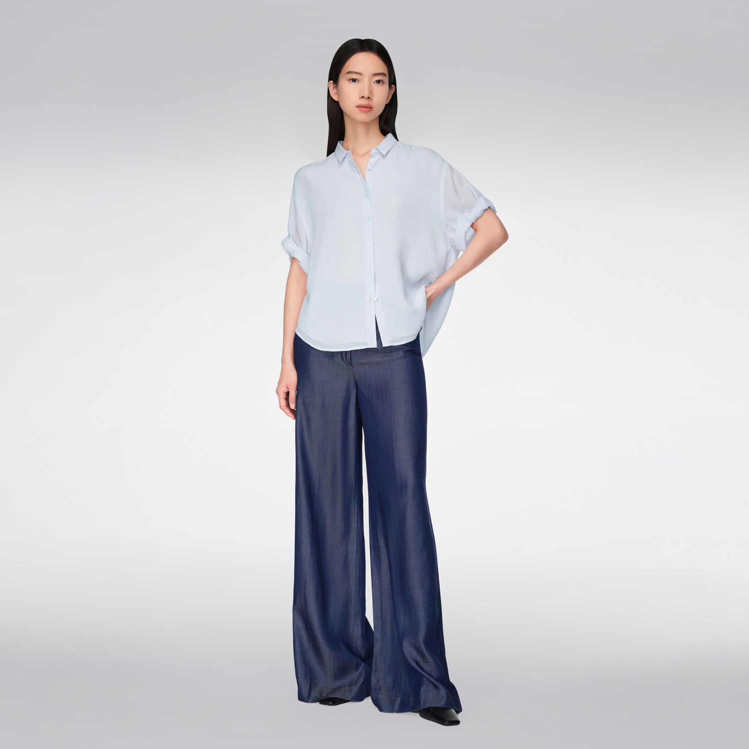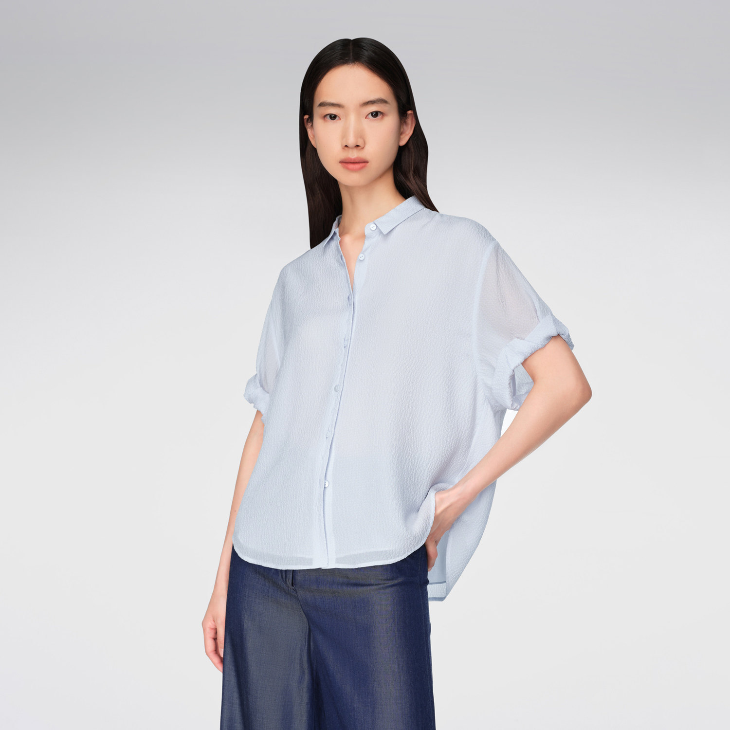 【重磅真丝】OVV春夏热卖女装肌理感泡泡绉落肩短袖衬衫