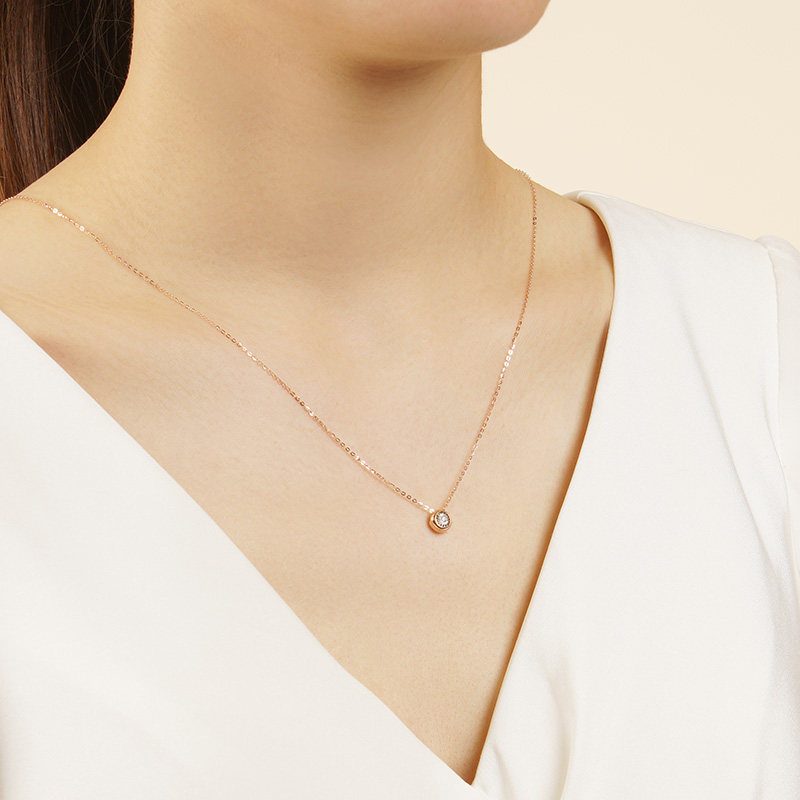 水贝黄金官方旗舰店18K项链O字链百搭玫瑰金锁骨链金饰礼物送女友