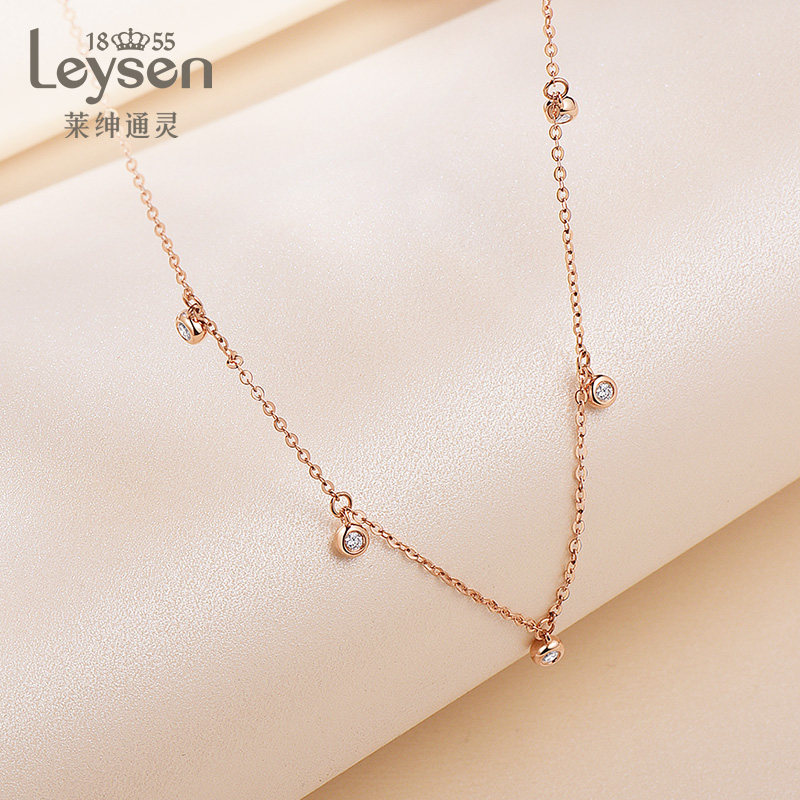 周六福18K金项链女肖邦链彩金au750玫瑰金多彩锁骨链素链新年礼物
