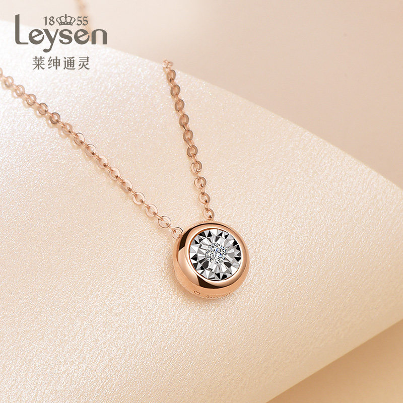 莱绅通灵珠宝 泡泡圆形独钻 18K金钻石吊坠 显钻项链女精致简约