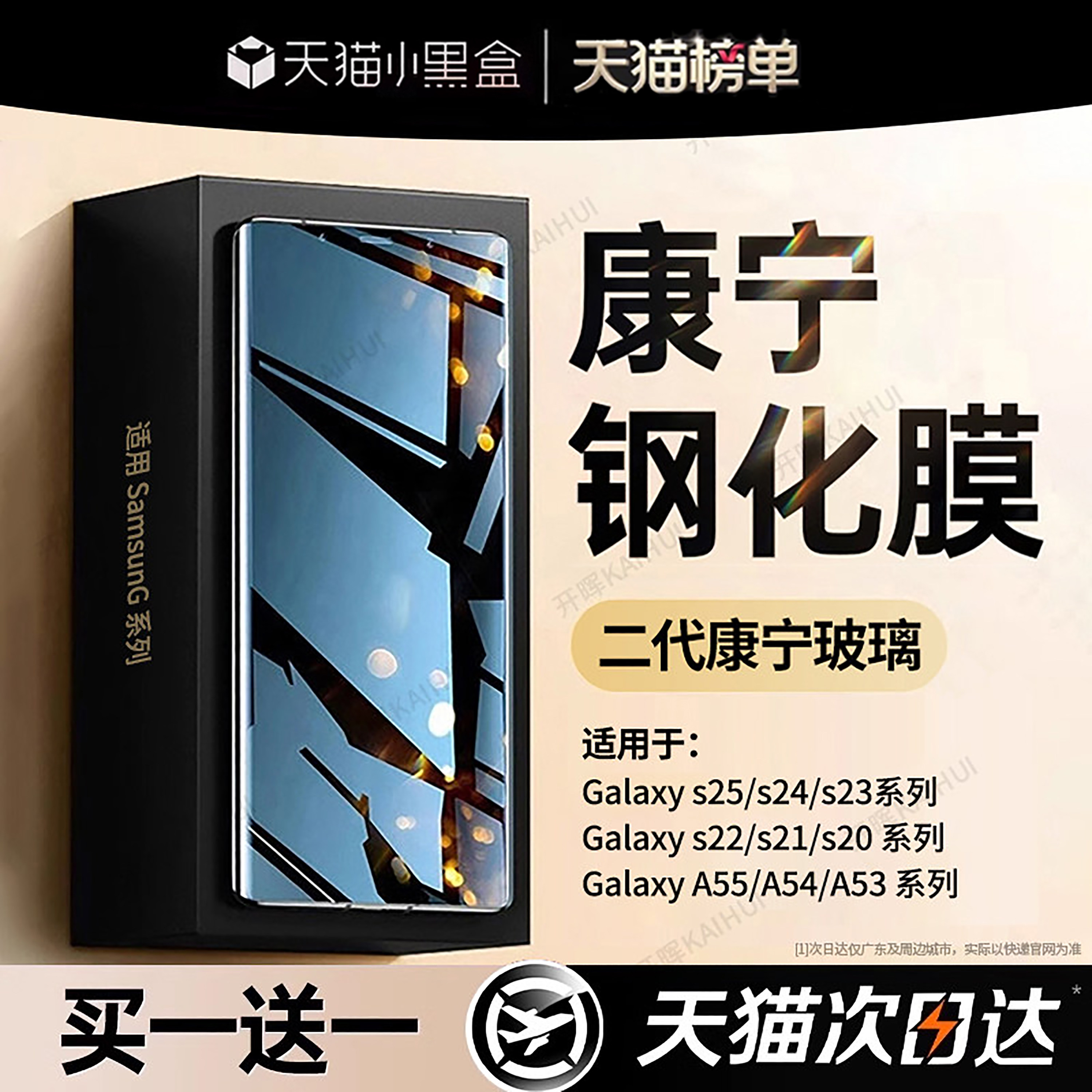 【康宁钢化】开晖适用三星s26/s25Edge钢化膜s24ultra手机膜s23s22fe+新款Galaxys21防窥s20全屏a56/a55贴a54