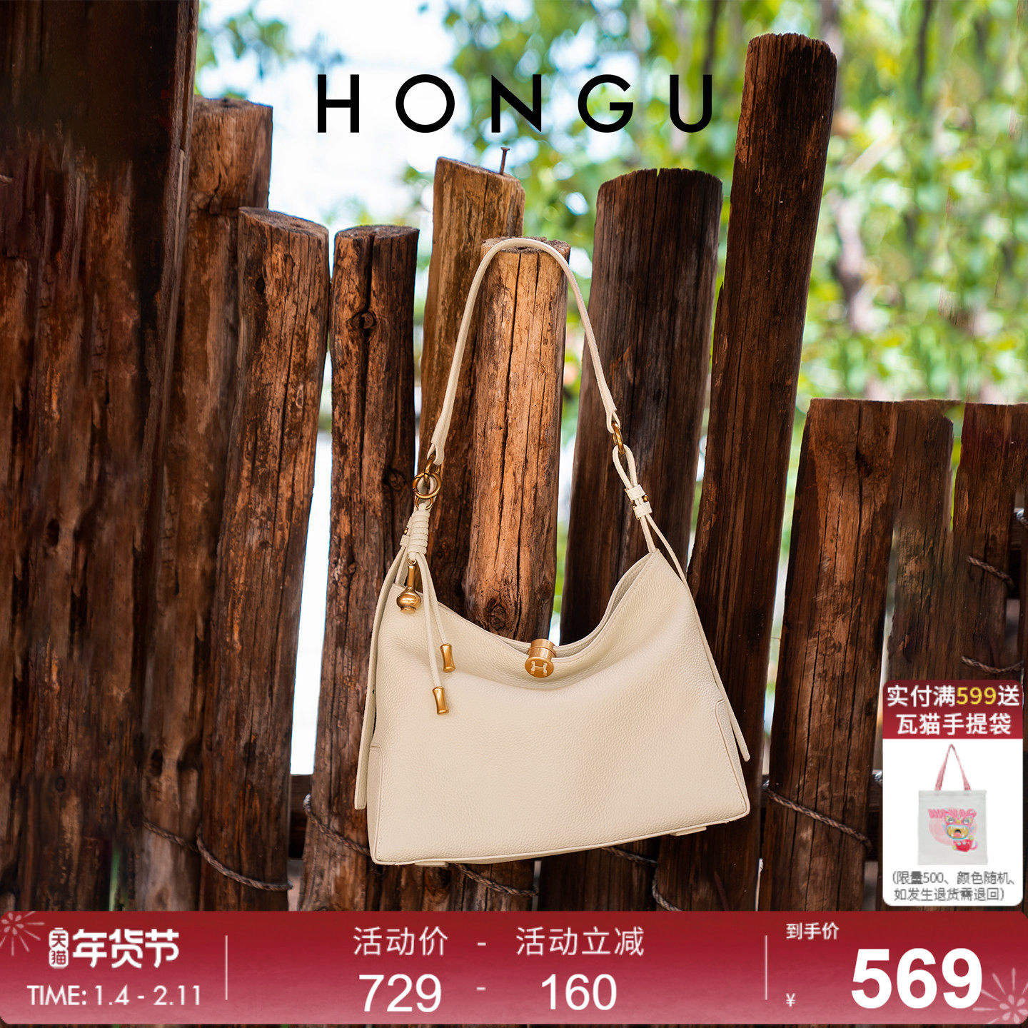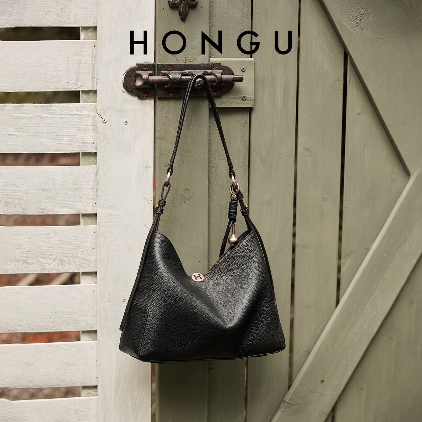 【新年礼物】红谷包包新款质感真皮单肩腋下包通勤牛皮hobo包女包