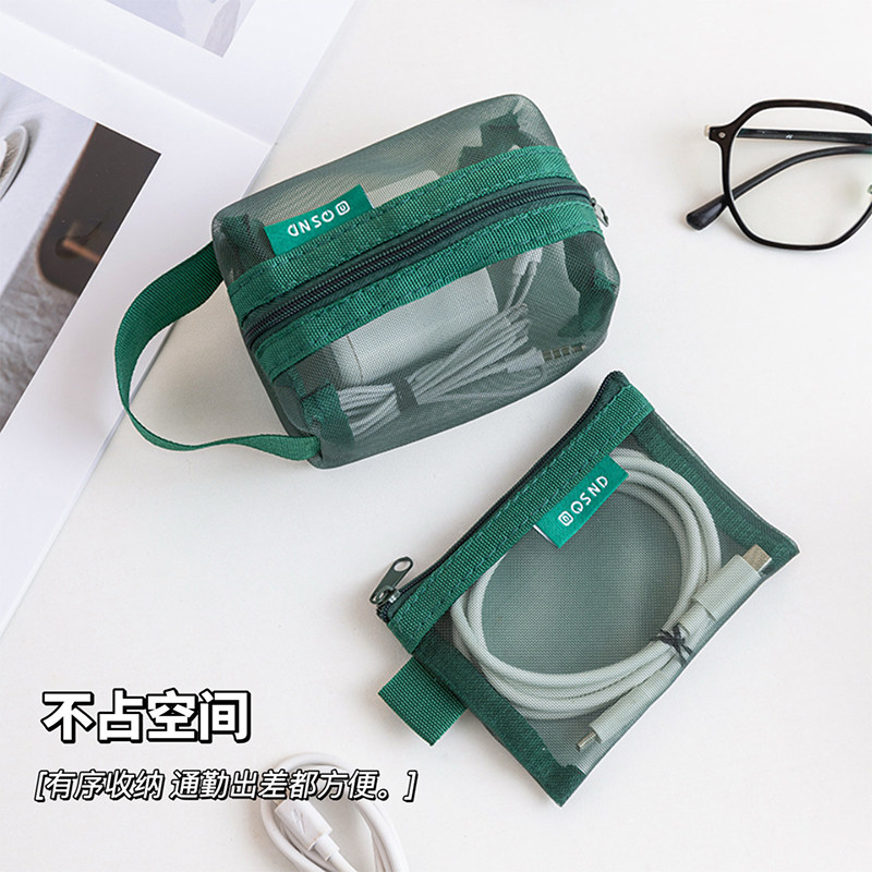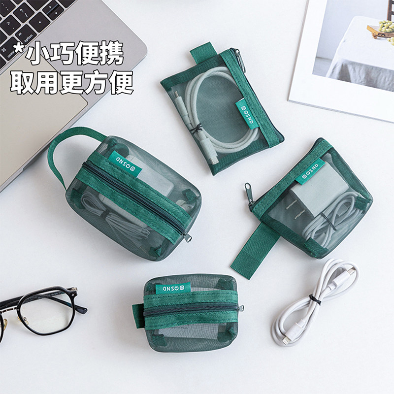 网纱拉链收纳袋旅行便携零钱小包数据线耳机手机配件数码包化妆包