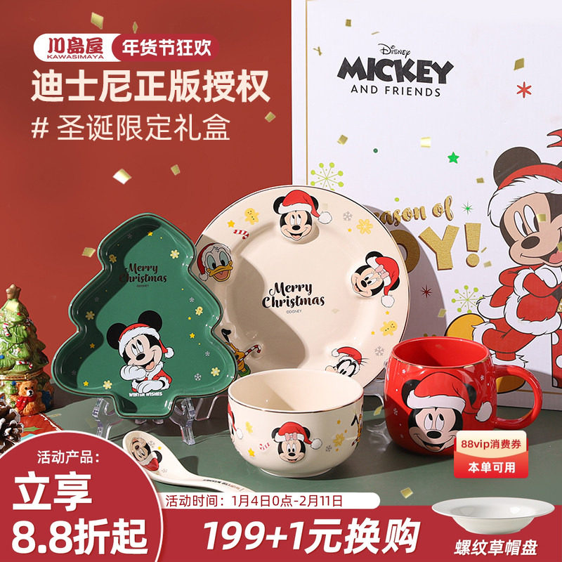 川岛屋迪士尼圣诞节餐具碗碟套装家用可爱一人食礼盒圣诞礼物女生
