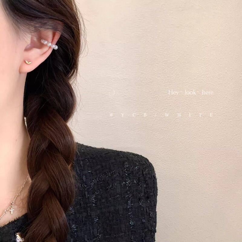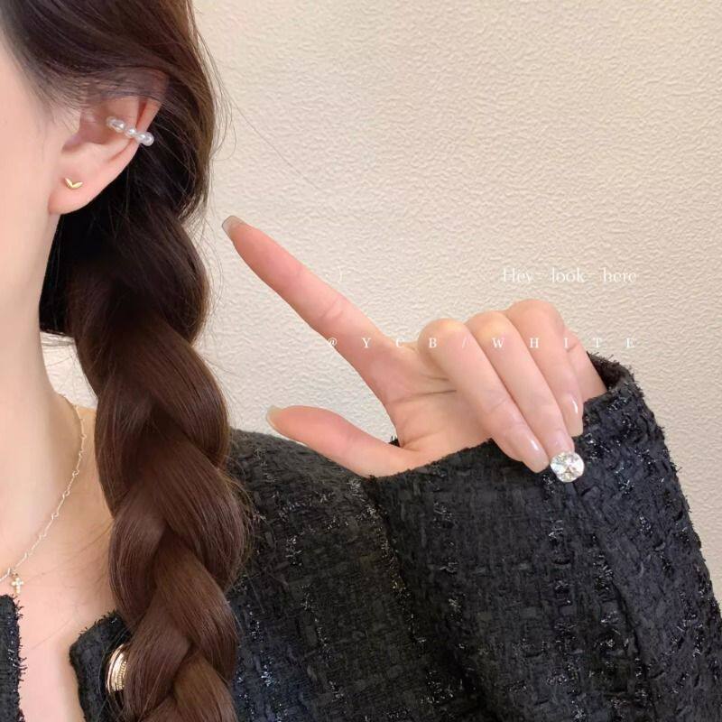 法式珍珠耳环女轻奢高级感耳圈耳钉2025新款无耳洞蚊香盘耳夹耳饰
