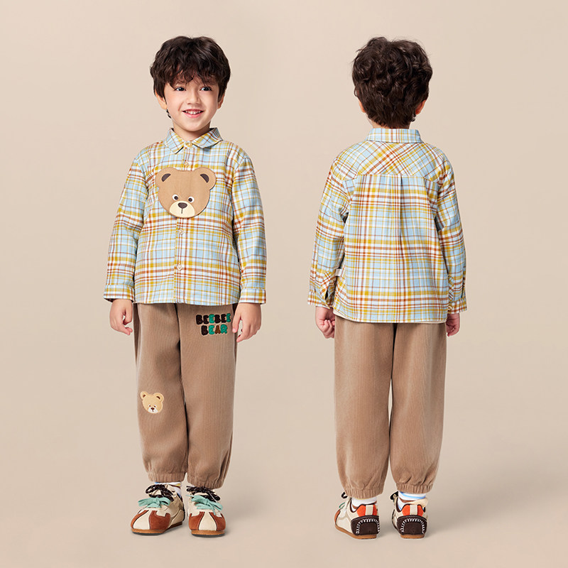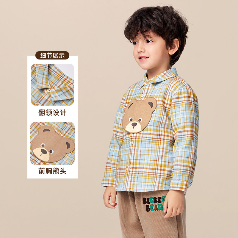 【商场同款】PawinPaw卡通小熊童装25年秋季新款男宝宝格纹衬衫
