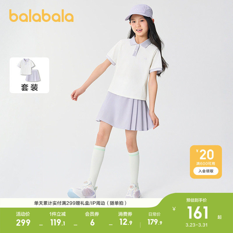 巴拉巴拉童装儿童短袖套装女童2026款夏百褶裙两件套时尚百搭洋气