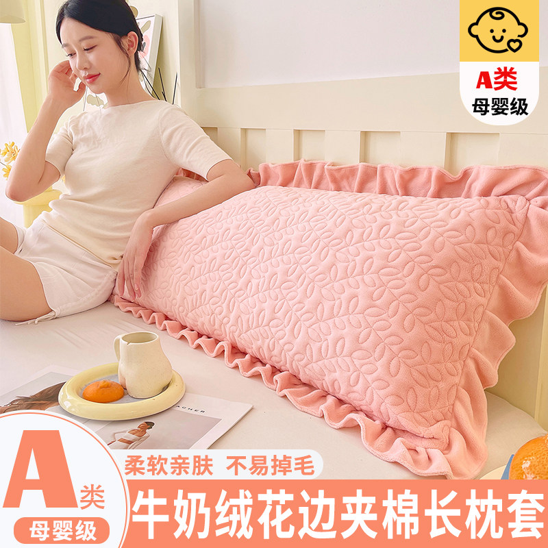 冬季牛奶绒双人长枕套夹棉加厚1.2m枕头内胆套1.5m1.8m加绒枕芯套