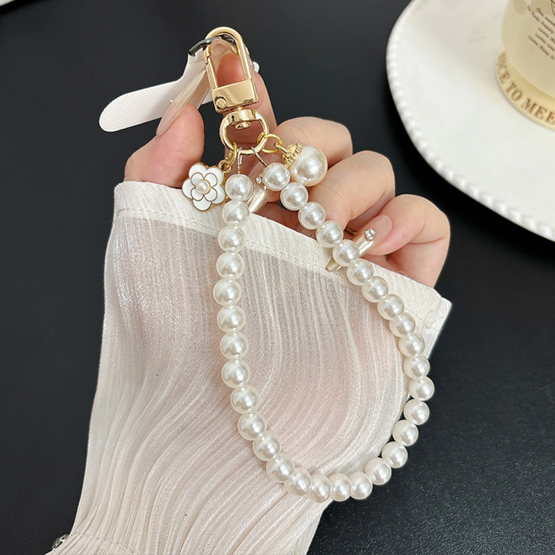 【高乐多】手机挂绳山茶花珍珠小吊坠手链ins女款手工串珠手腕链手机壳挂饰防丢挂链百搭ccd相机包包手提链绳
