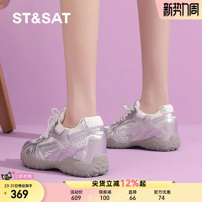 星期六内增高德训鞋女6CM厚底夏新款女鞋银色芭蕾运休闲动阿甘鞋