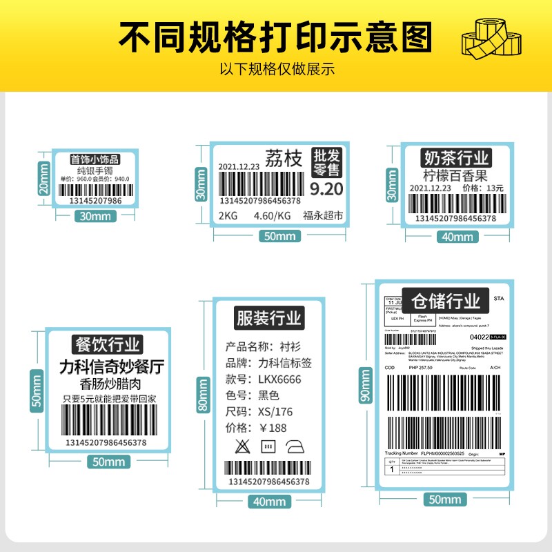 莱特莱利热敏标签纸60x40 30 20 100x100 150 70*50 80三防不干胶条码打印机快递超市价格贴纸防水可定制彩色