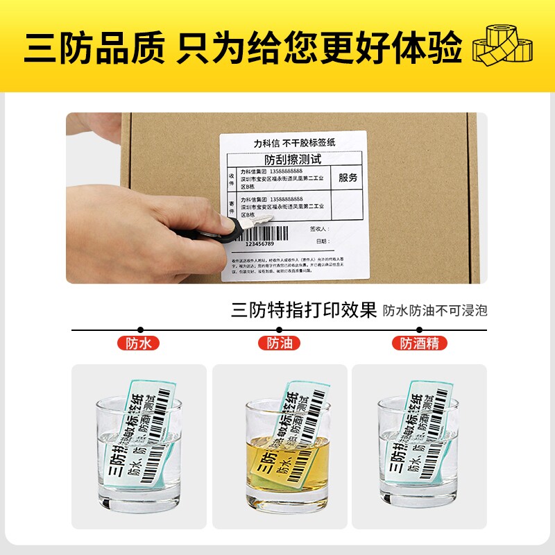 三防热敏标签纸热敏纸条码纸不干胶打印纸三防贴纸50*30 20 40 60 70 80 100*100mm物流E邮宝面单奶茶店吊牌