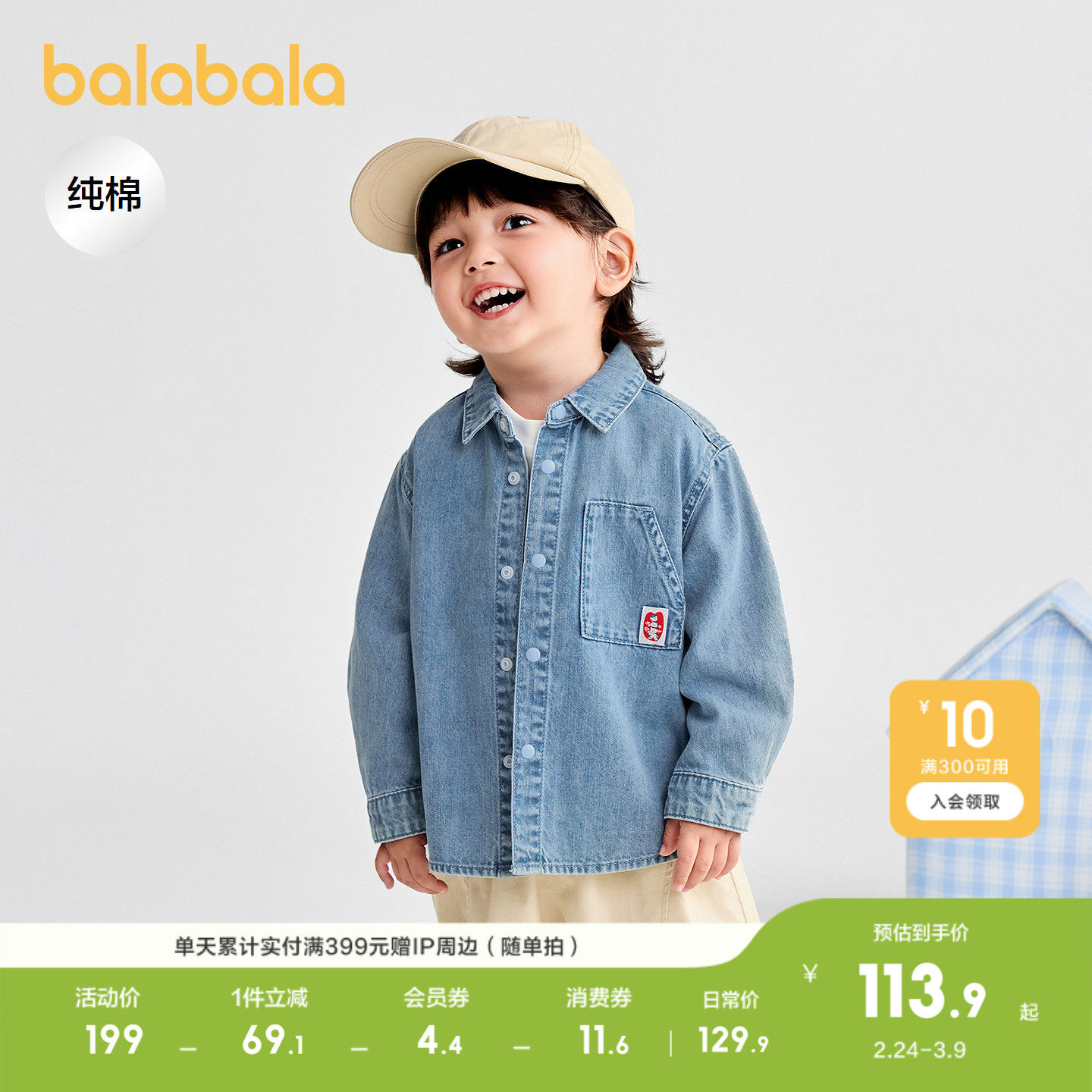 【商场同款】巴拉巴拉宝宝衬衫长袖牛仔外套男童上衣2025新款秋装