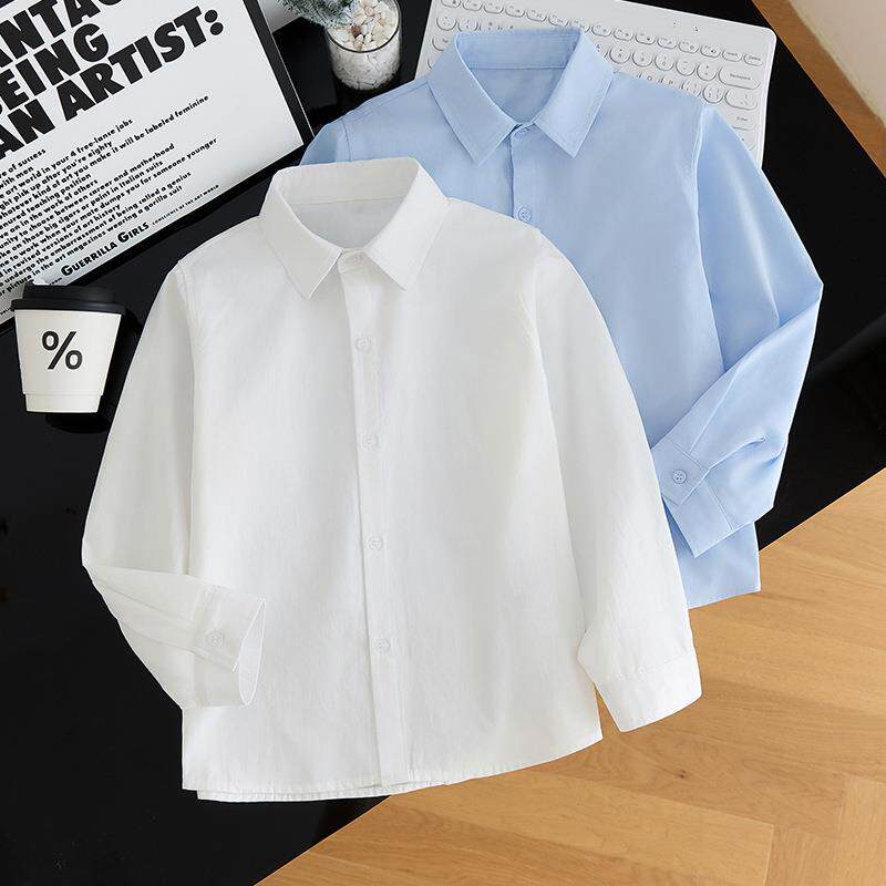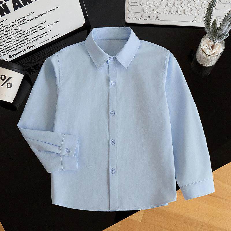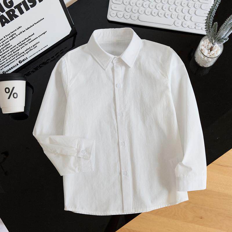 男童白衬衫长袖秋季儿童白衬衫校服主持人表演服衬衣白色春秋长袖