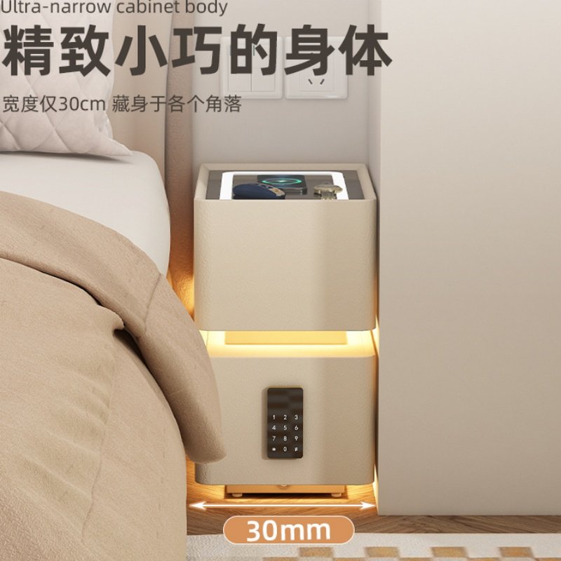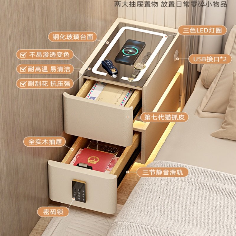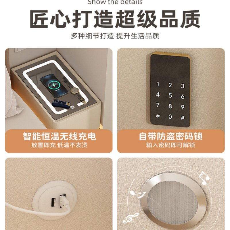 超窄智能悬浮床头柜现代简约无线充电小型轻奢卧室实木柜子隐藏式