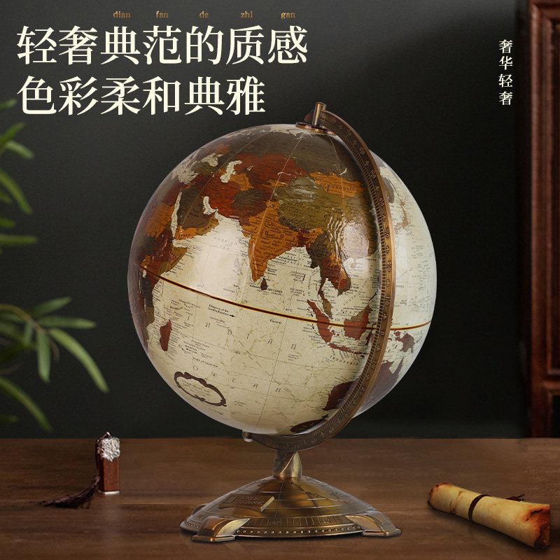 天屿32cm欧式复古3D凹凸立体浮雕地球仪轻奢摆件家庭办公室装饰品男孩生日礼物
