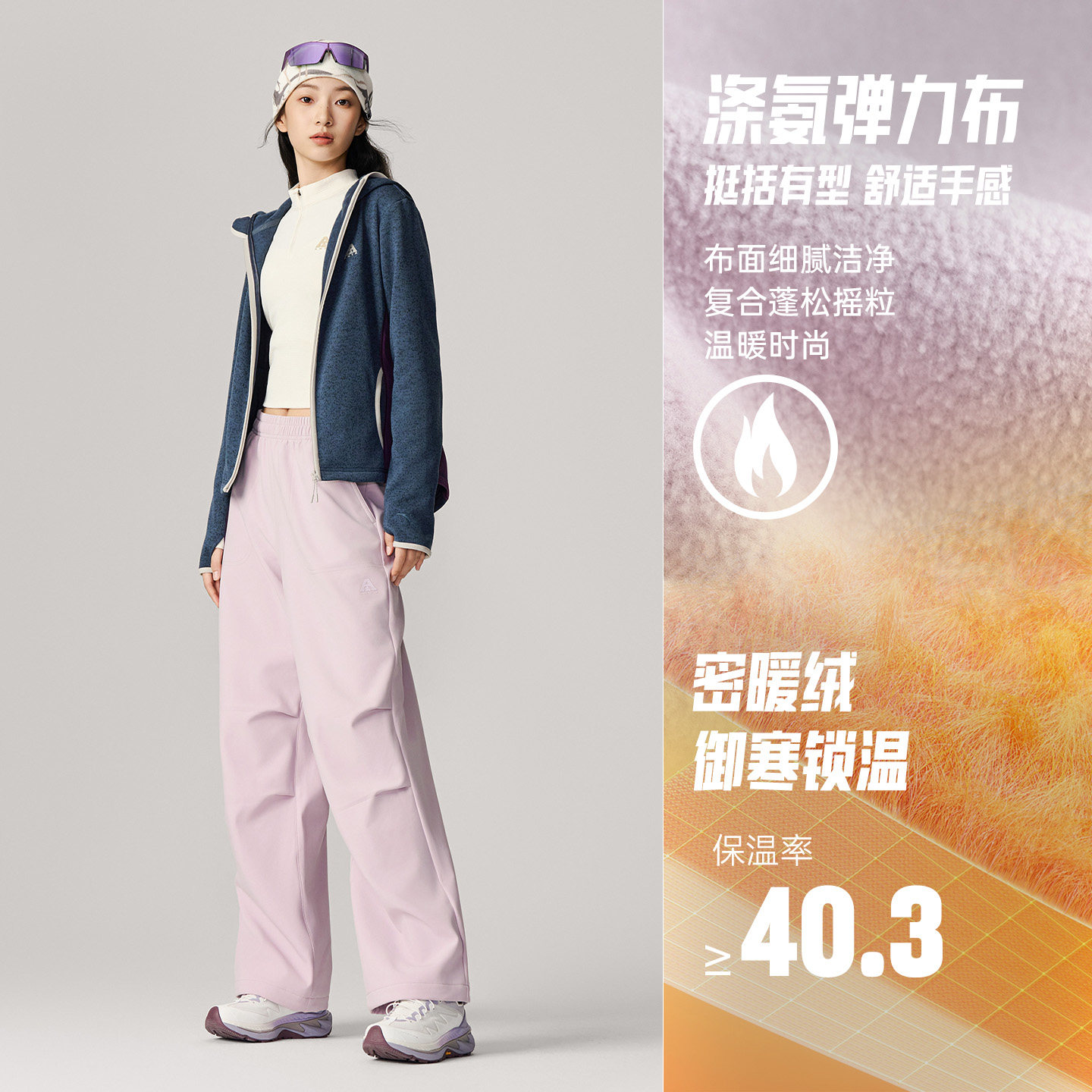 安踏山壳裤丨大地之壳加绒运动长裤女裤冬季户外软壳裤登山伞兵裤