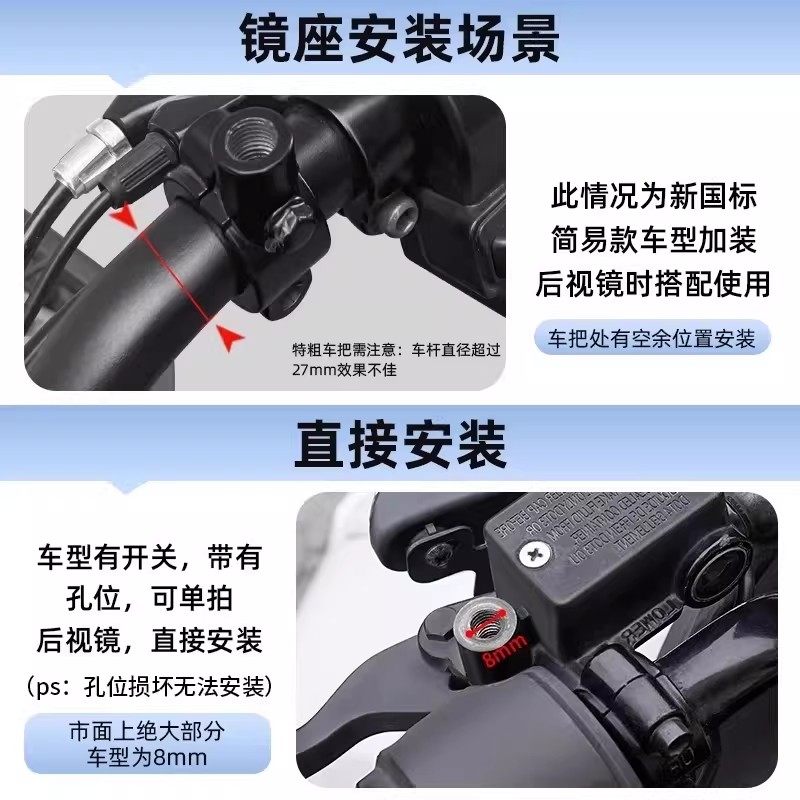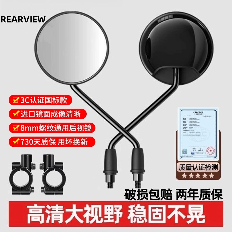 电动电瓶车后视镜自行车圆镜适用雅迪爱玛大视野倒车反光镜子通用