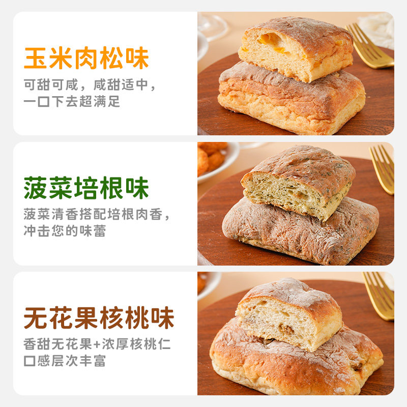 恰巴塔面包早餐手作欧包速食整箱减低代餐肥脂健身饱腹0添加蔗糖