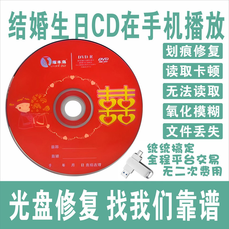 结婚DVD VCD光盘转u盘数据恢复刻痕修复无法读取无损转录定制服务