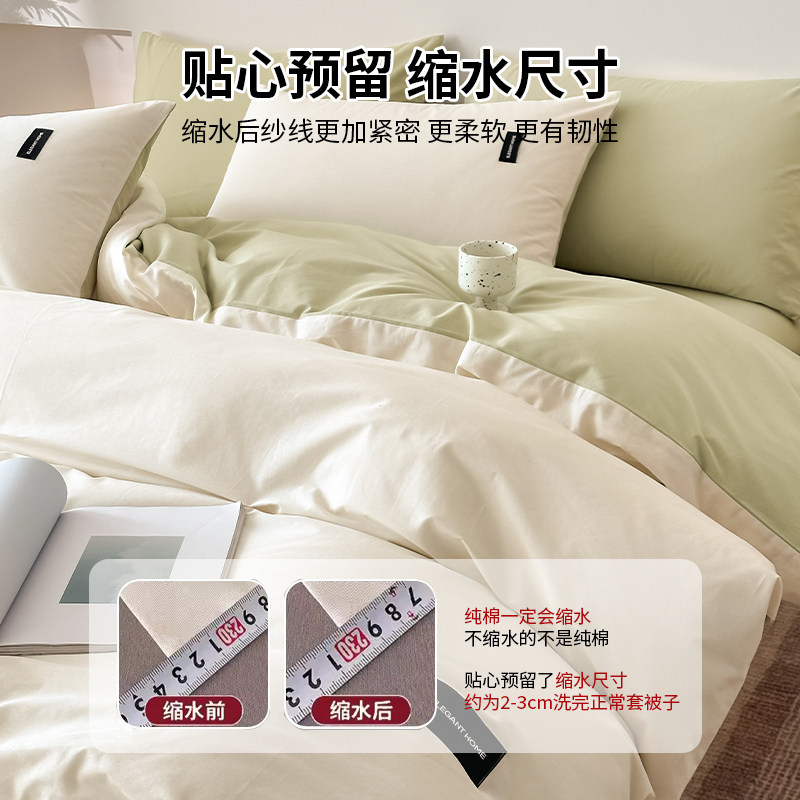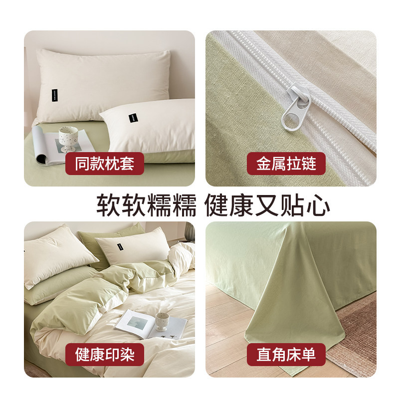 A类水洗棉双层纱四件套被罩非全棉纯棉床单人学生宿舍被套三件套