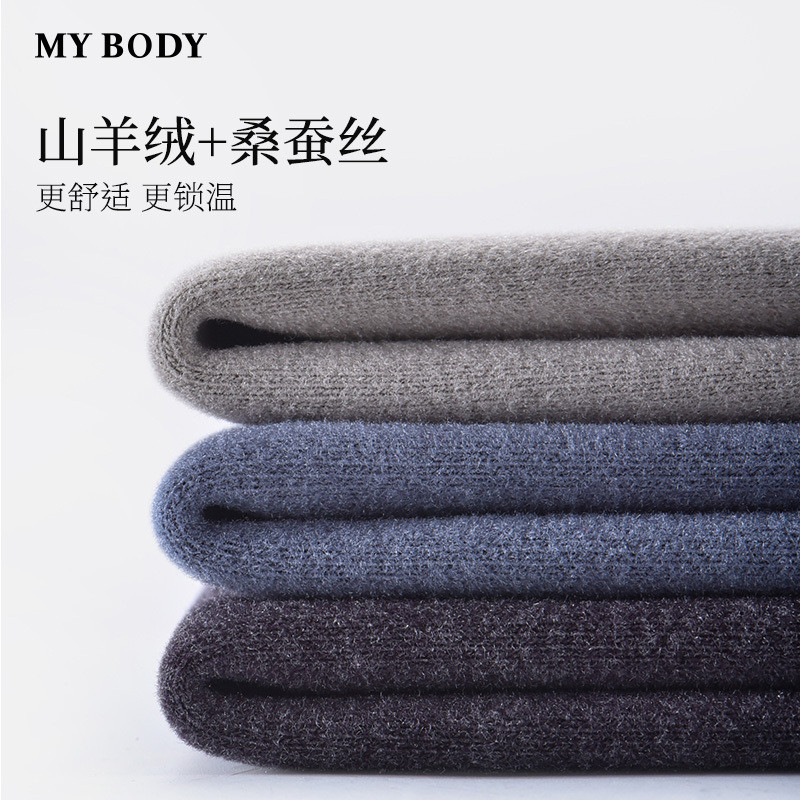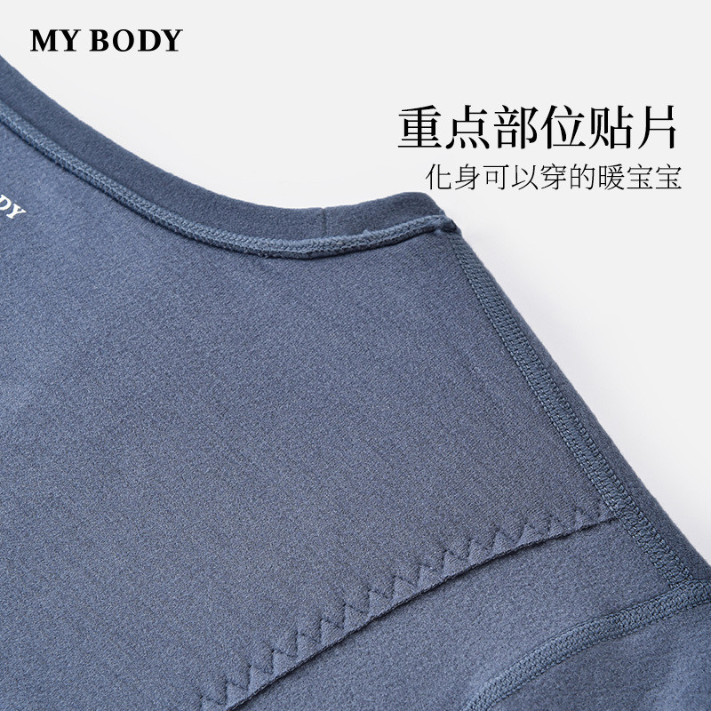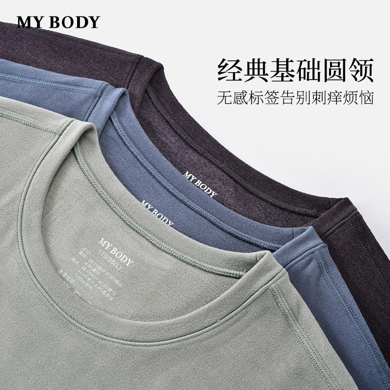 商场同款MYBODY冬季新款保暖内衣男加厚贴片基础圆领男士保暖套裝