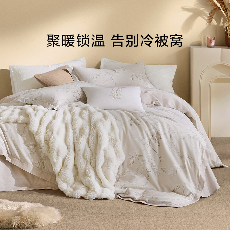 洁丽雅牛奶绒四件套冬季珊瑚绒被套床单加绒毛绒法兰绒床上三件套