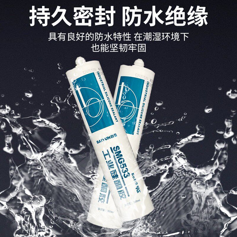 白云粘电子元器件灯具车灯防水密封耐温黑色硅酮胶