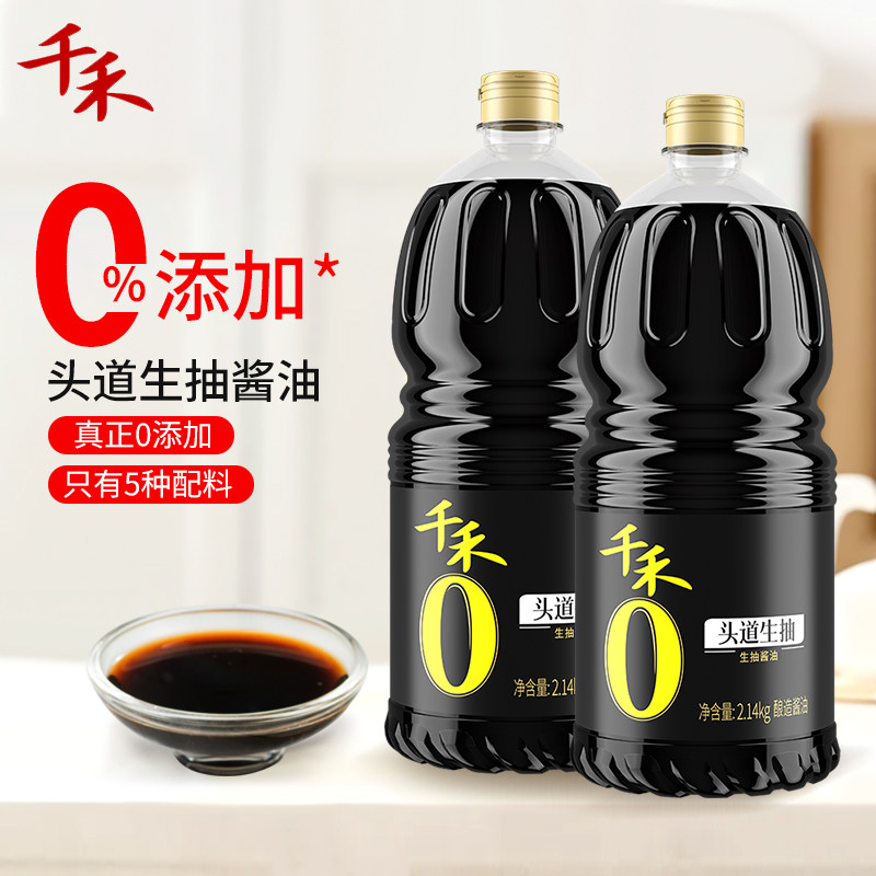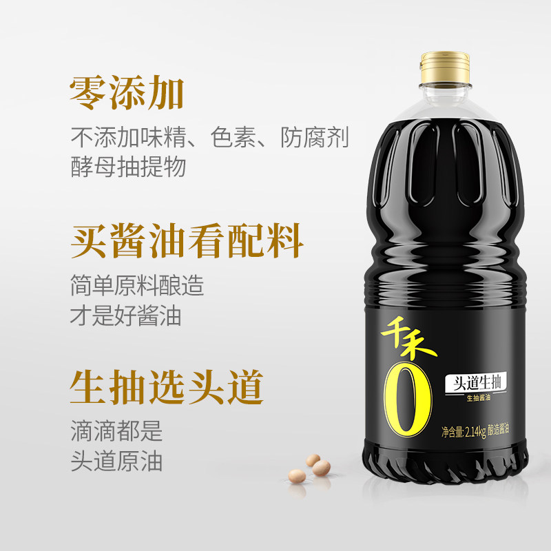 千禾酱油生抽零添加头道2.14kg/桶酿造炒菜凉拌家用黄豆味精源头