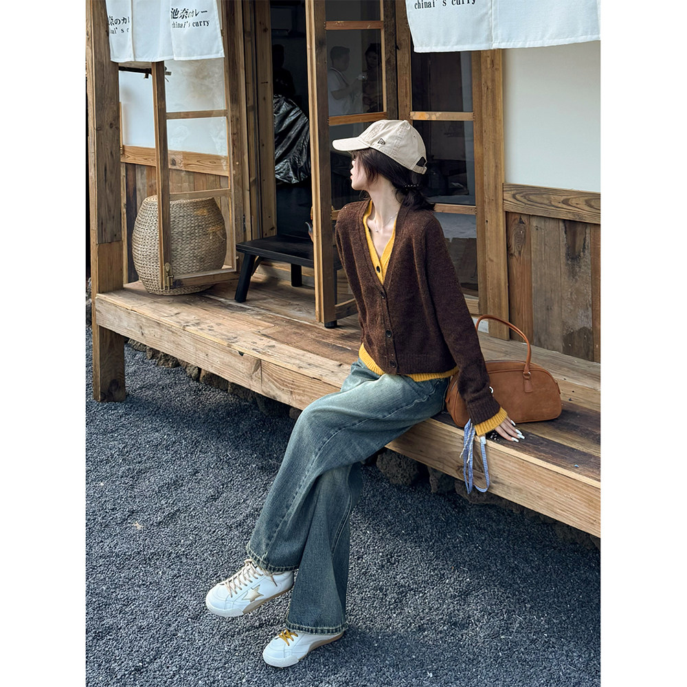 王家有鱼秋季新款2025复古蓝微喇牛仔裤中高腰不贴腿显瘦裤子女款