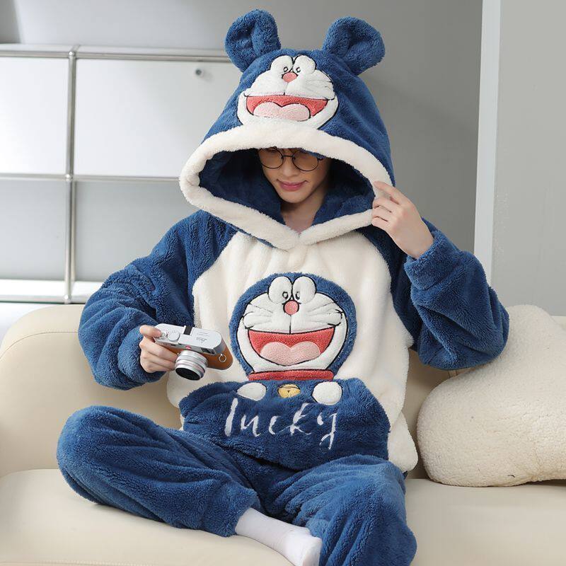 睡衣男秋冬款加绒加厚珊瑚绒青少年冬天可外穿卡通大码家居服套装