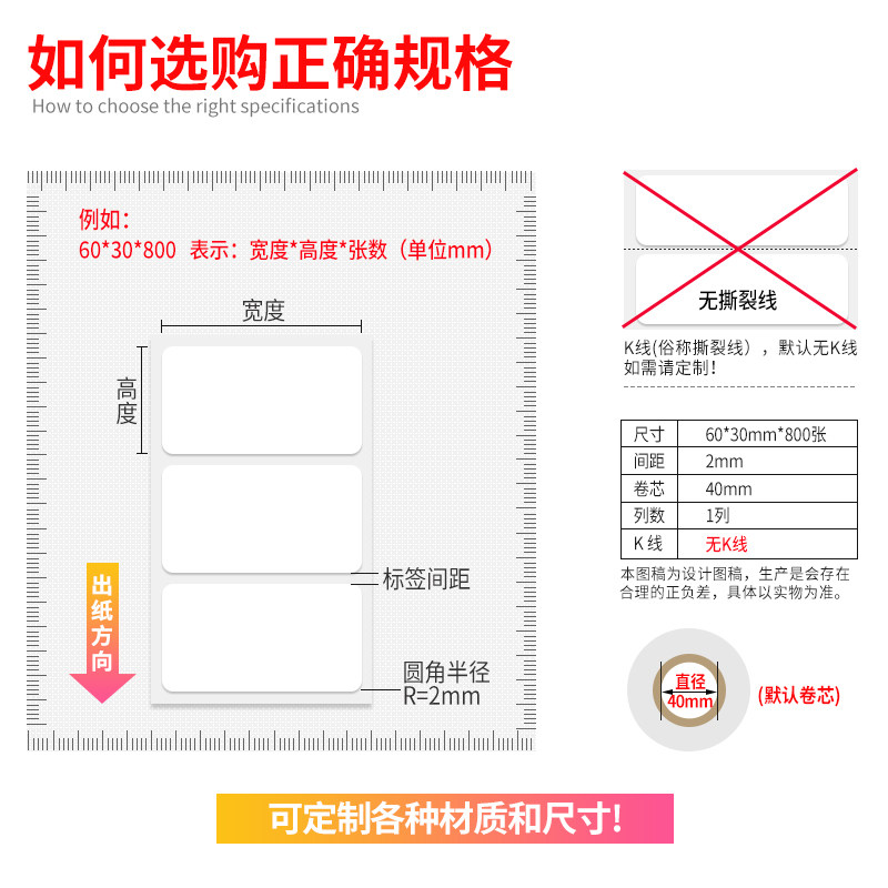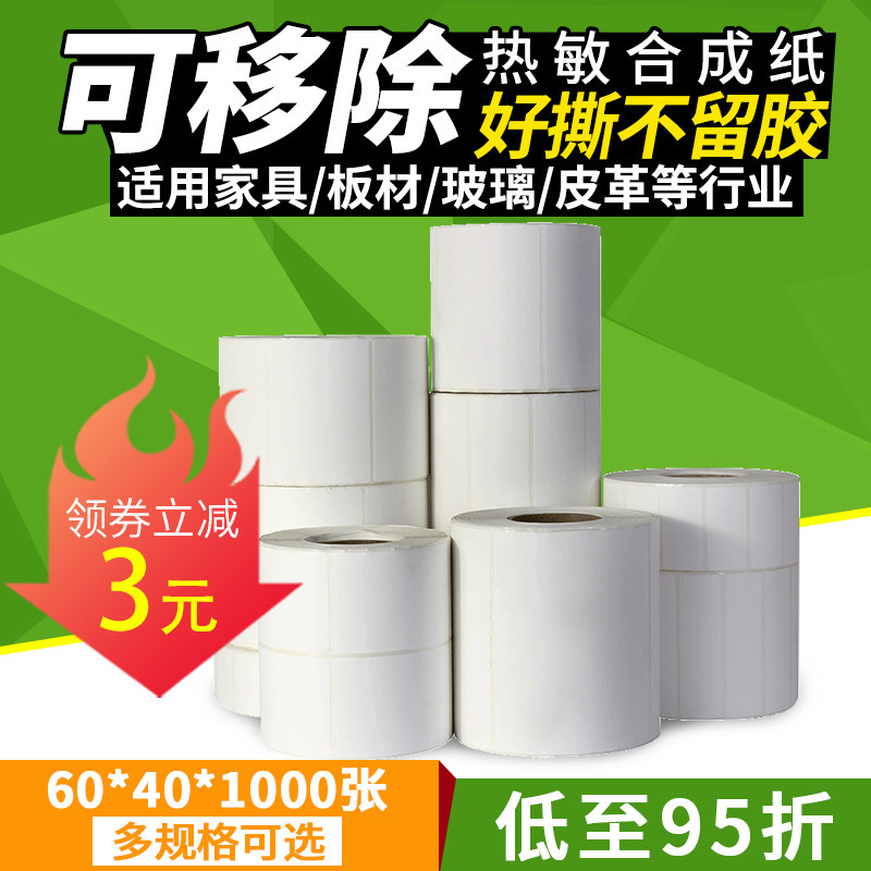 可移除热敏合成纸不干胶标签纸60*40 20 25 30 50 60 70 80 100防水易撕不烂家具板材玻璃冷库冷冻标签贴纸