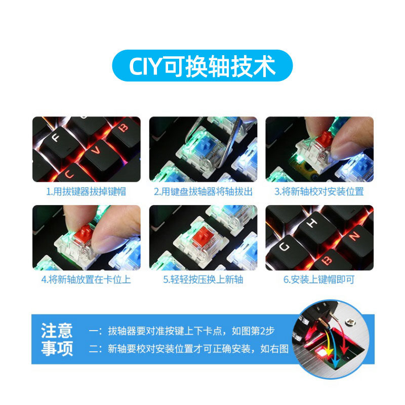 104键有线游戏机械键盘青黑茶红轴办公静音打字粉紫色女生麻将音