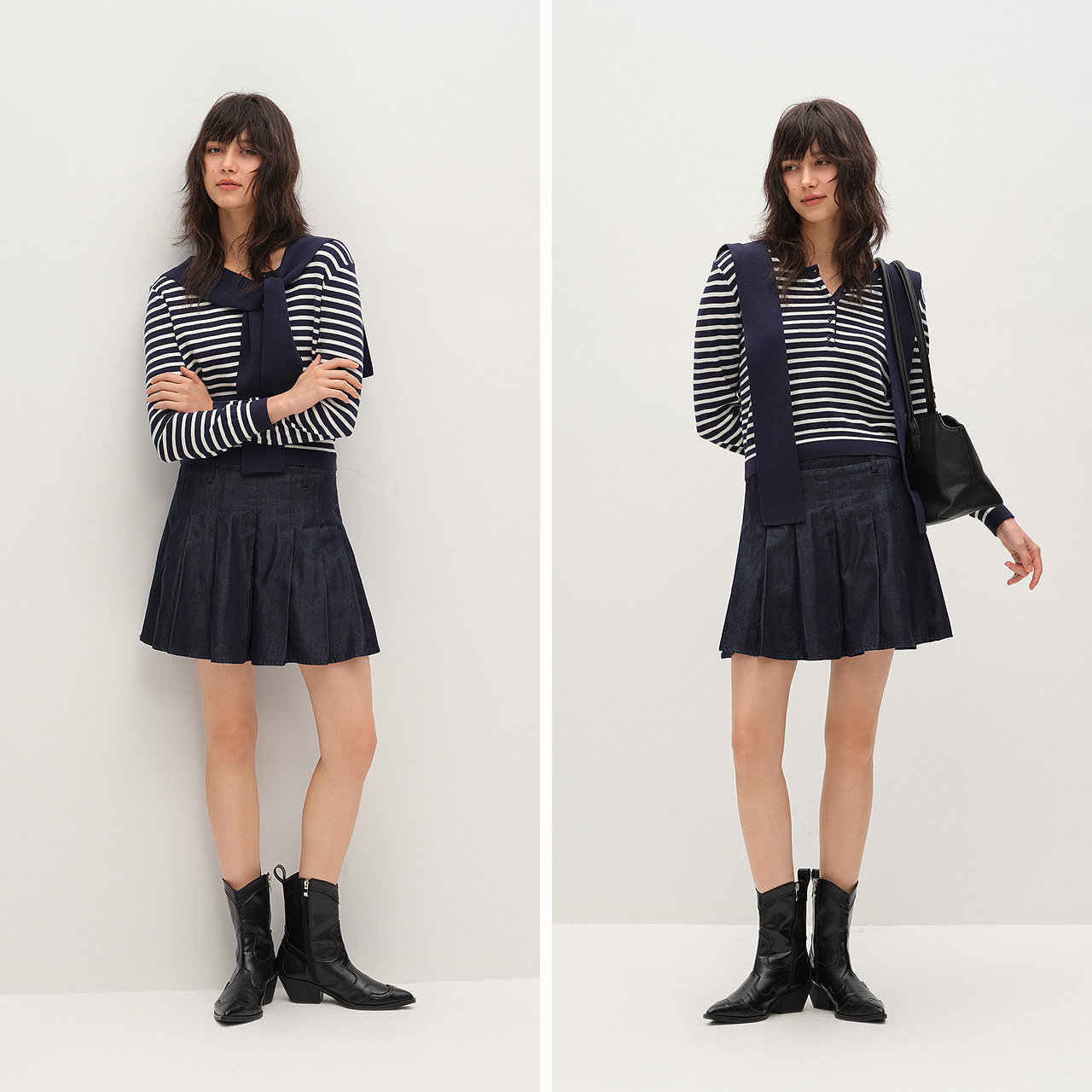 商场同款|森马牛仔半身裙女春季百褶裙2026新款俏皮辣妹简约短裙