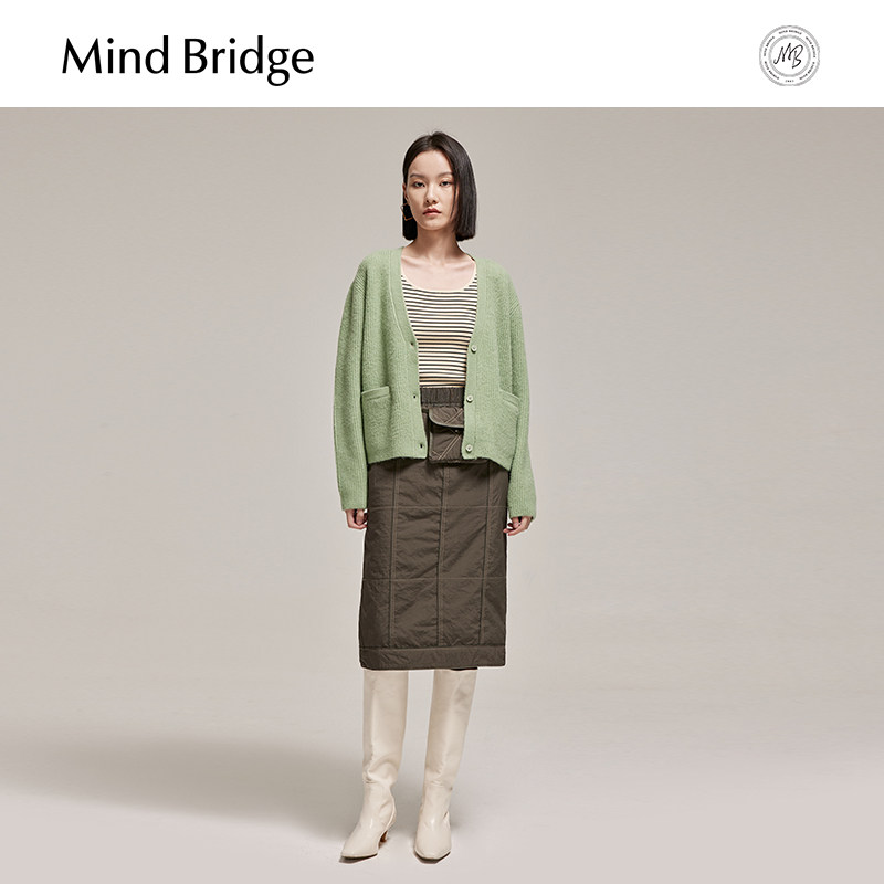 Mind Bridge女士长袖针织开衫秋季秋季新款 v领短款羊毛衫毛衣