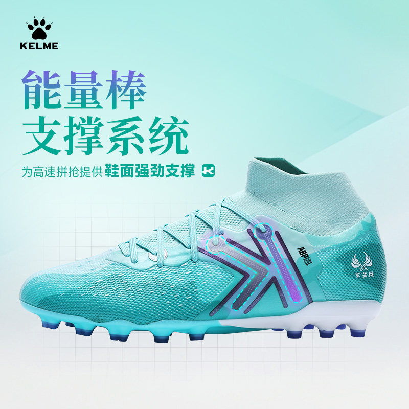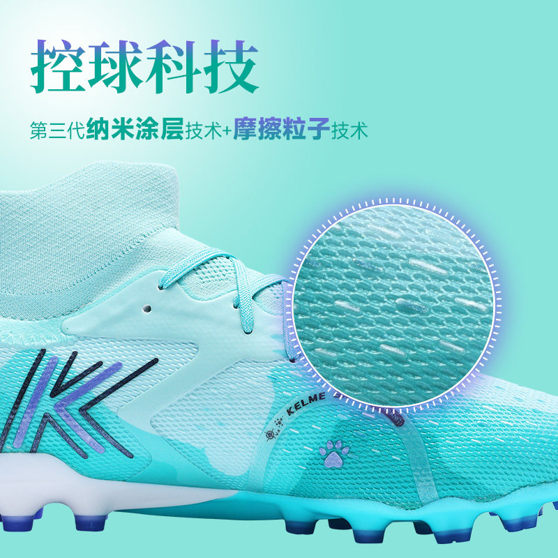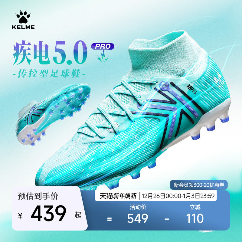 KELME卡尔美疾电5.0高帮MG次顶足球鞋男短钉天然人工草比赛训练