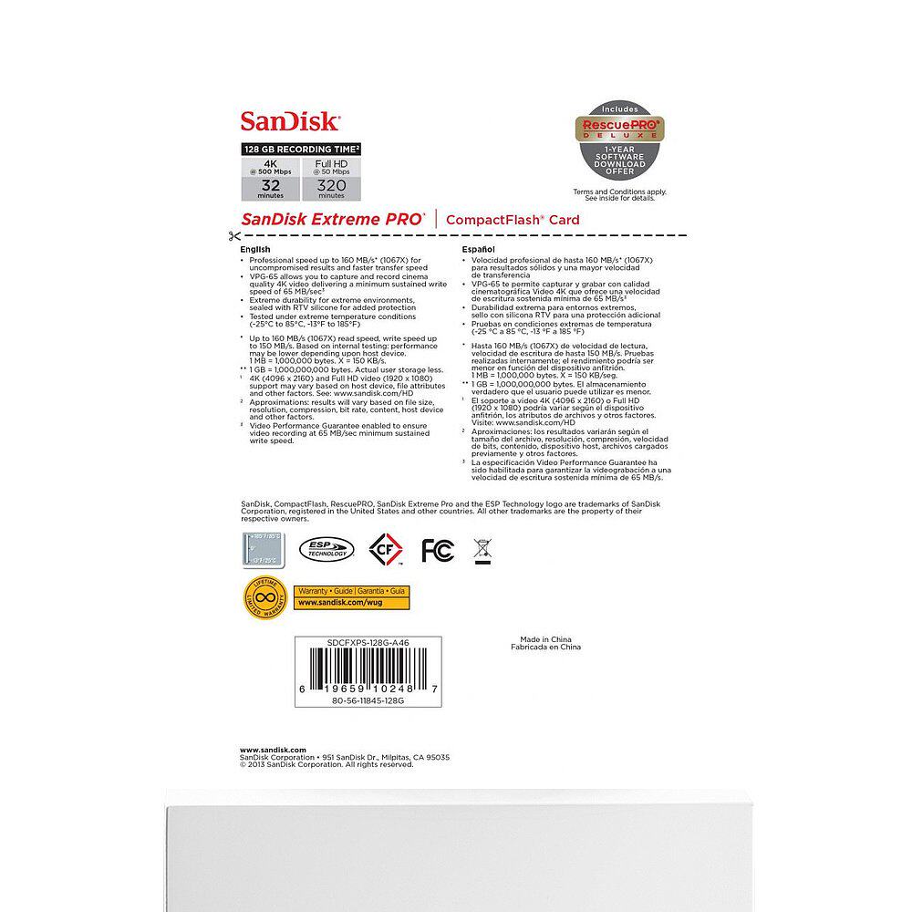【日本直邮】闪迪 CF闪存卡 至尊极速版Extreme PRO 128GB 160MB/