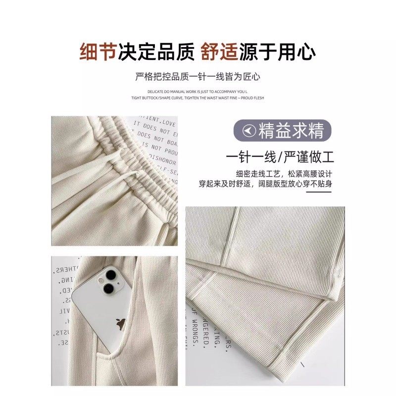 米白色阔腿裤女秋季2025新款小个子灯芯绒宽松休闲加绒大码加长