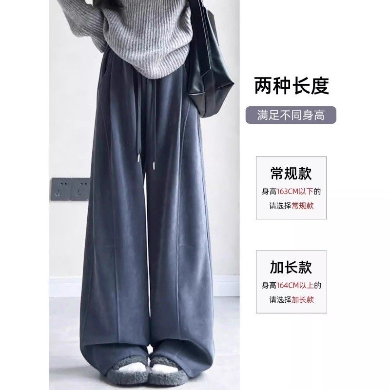 深灰色微喇休闲裤女2025秋冬加绒胖妹妹mm高腰弹力显瘦运动卫裤潮