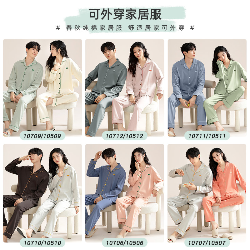 都市丽人纯棉情侣睡衣女春秋2026新款长袖好看高级男士家居服套装