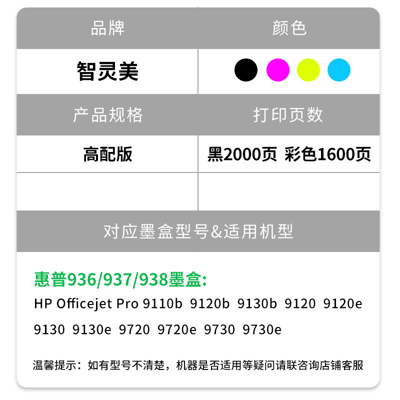 【原装品质】适用惠普938墨盒9730 9720 9110b 9120 9130 938XL 937墨水盒HP OfficeJet Pro黑彩色一体打印机